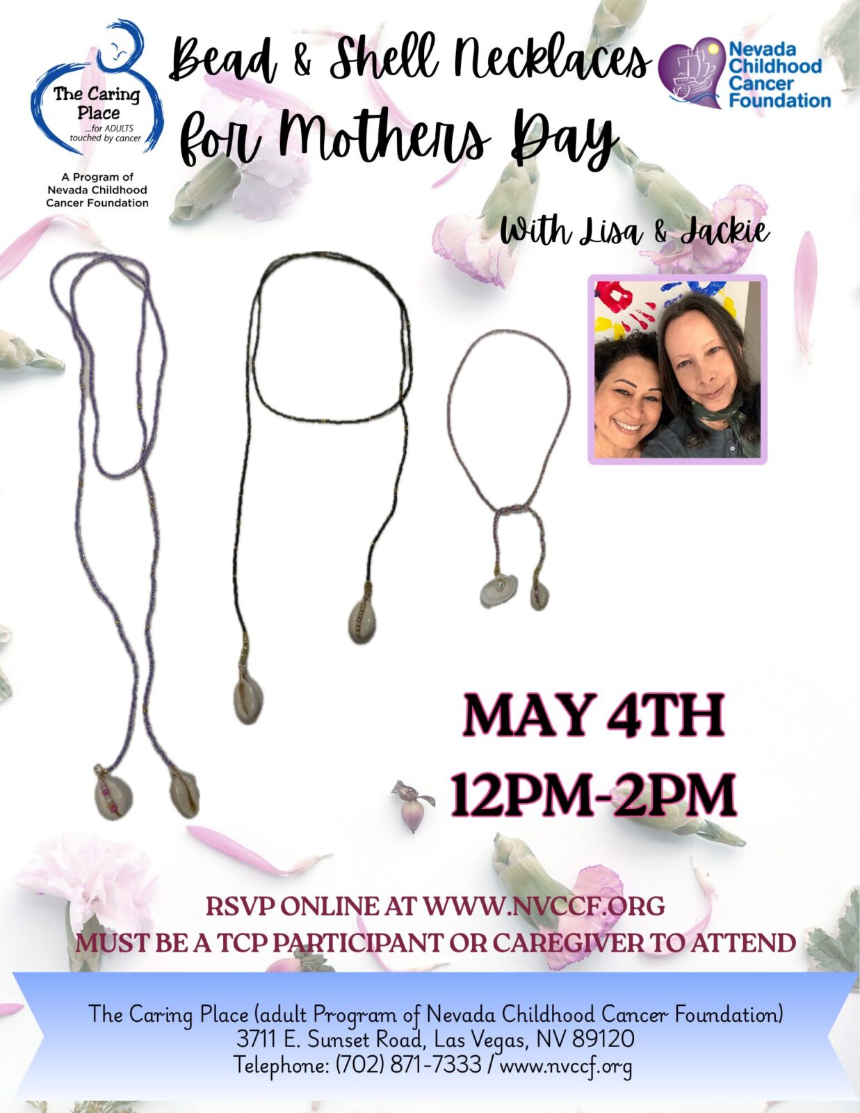 Join Jackie & Lisa for 2 hours of fun making these beautiful Bead & Shell Necklaces for Mother's Day!