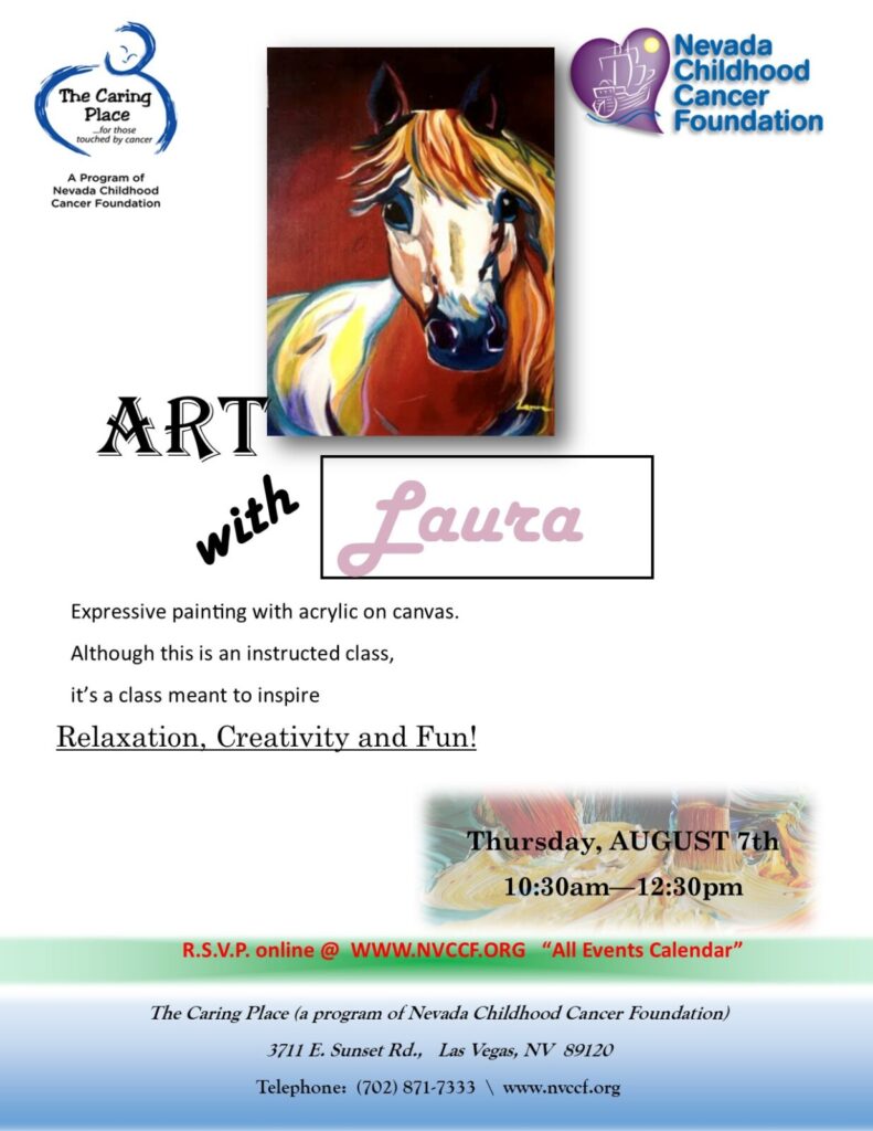 Join Laura for expressive painting with acrylic & canvas. Although this is an instructed class…. it is also a class meant to inspire Creativity, Relaxation and Fun!